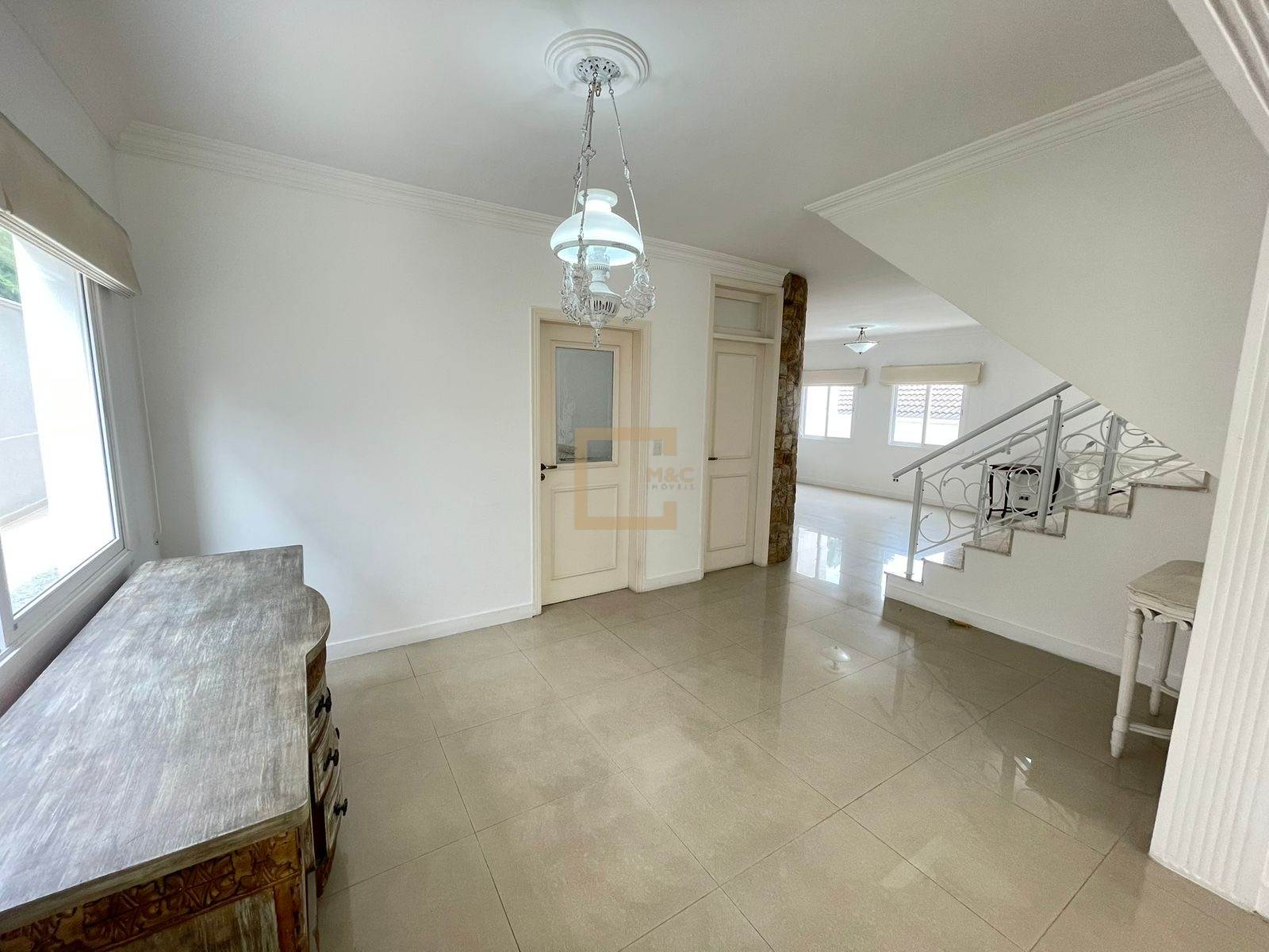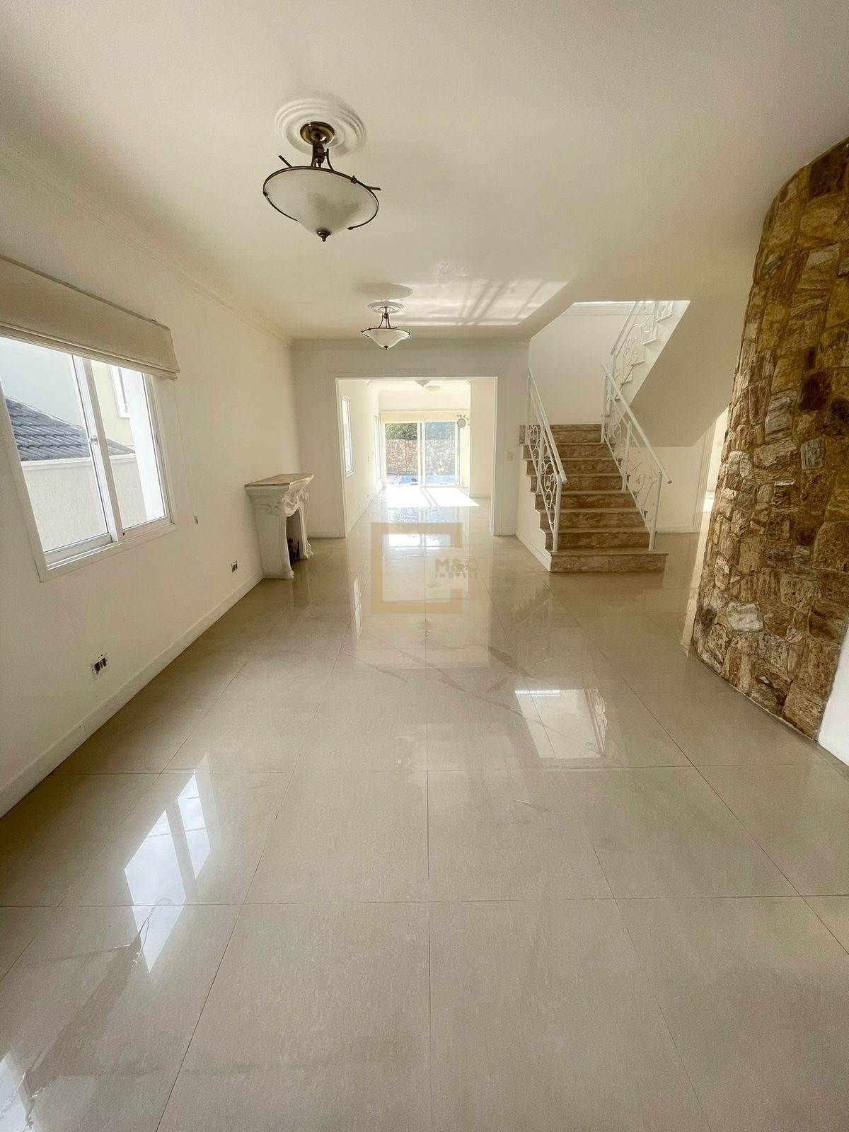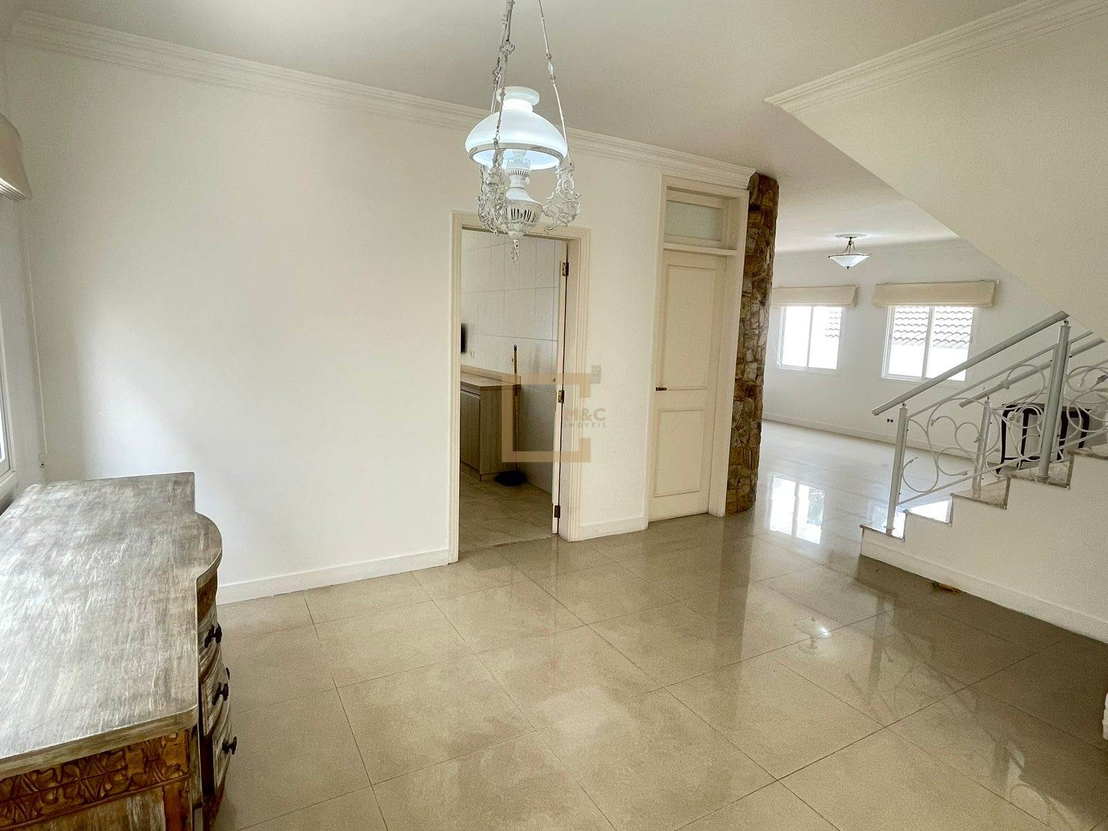 * Salas amplas e conectadas: estar, jantar, lareira