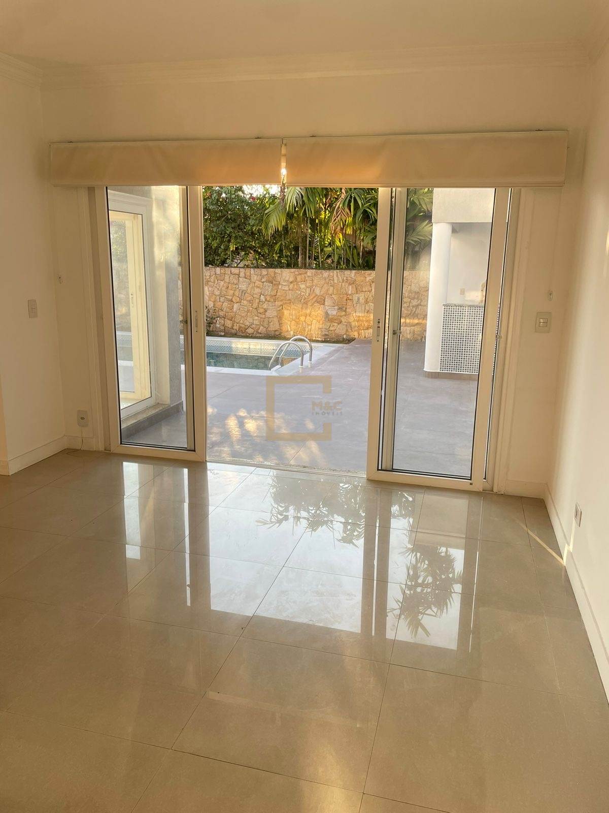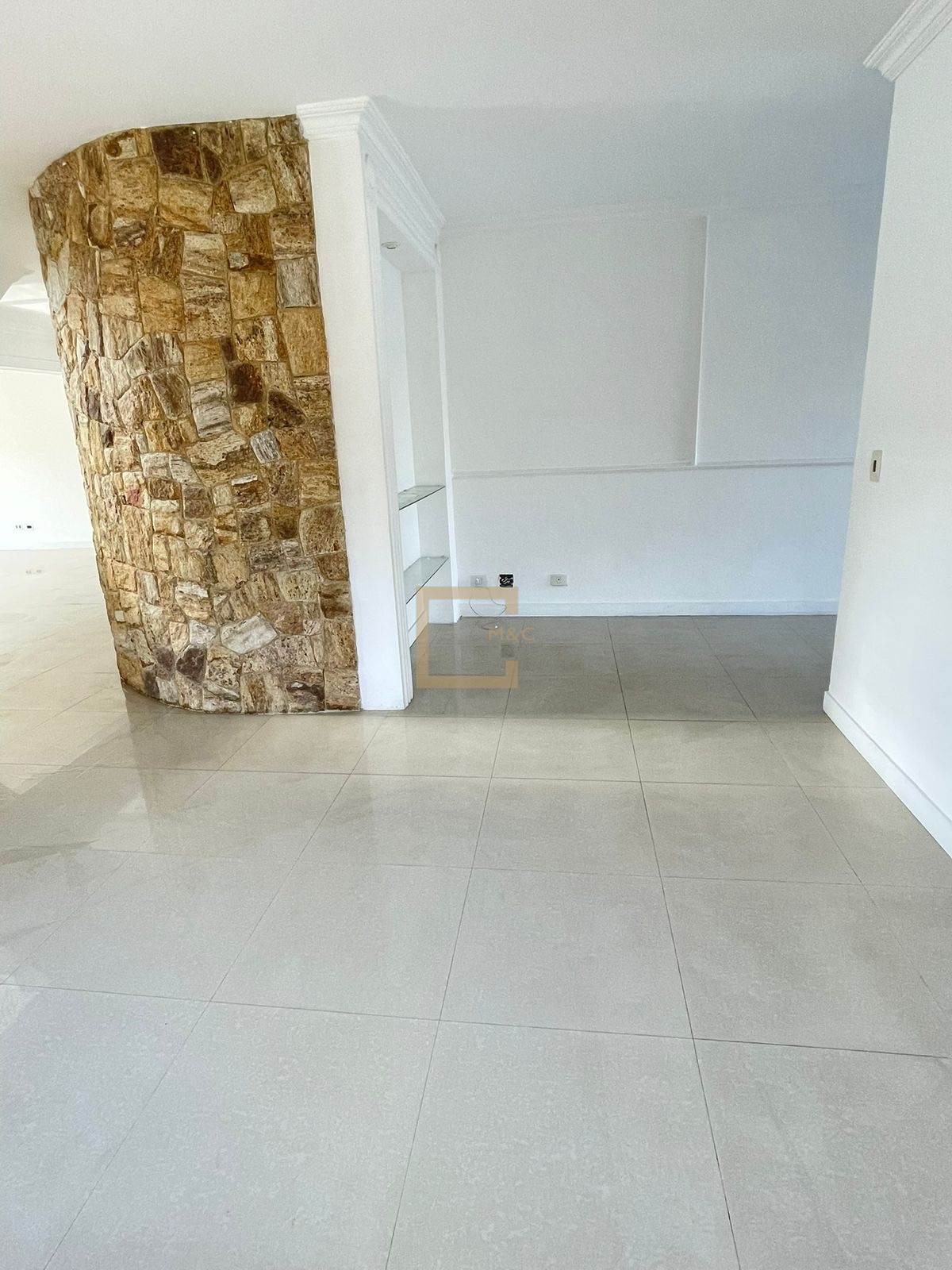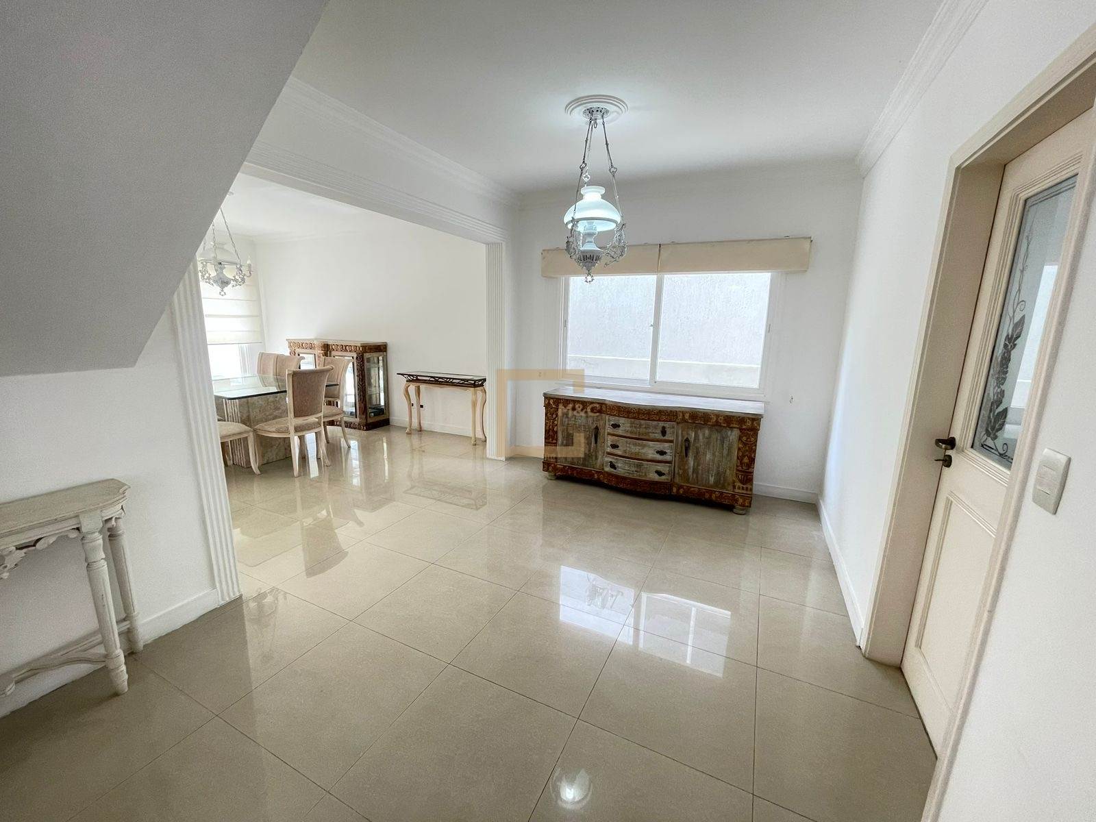 * Salas amplas e conectadas: estar, jantar, lareira