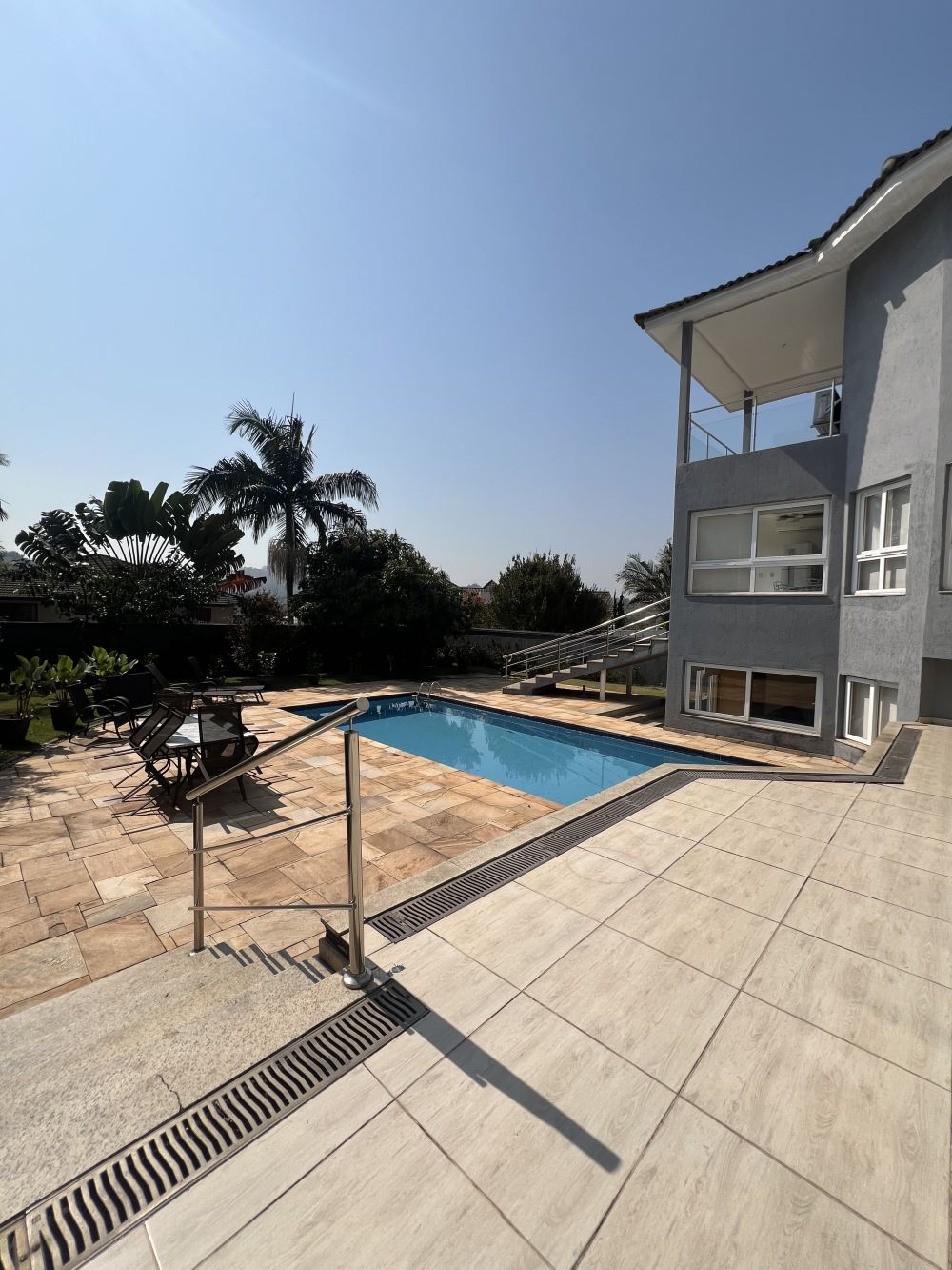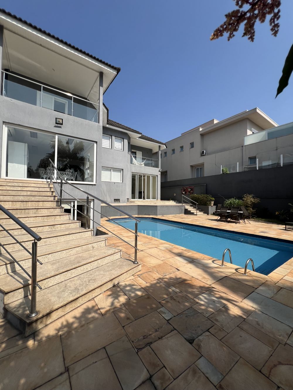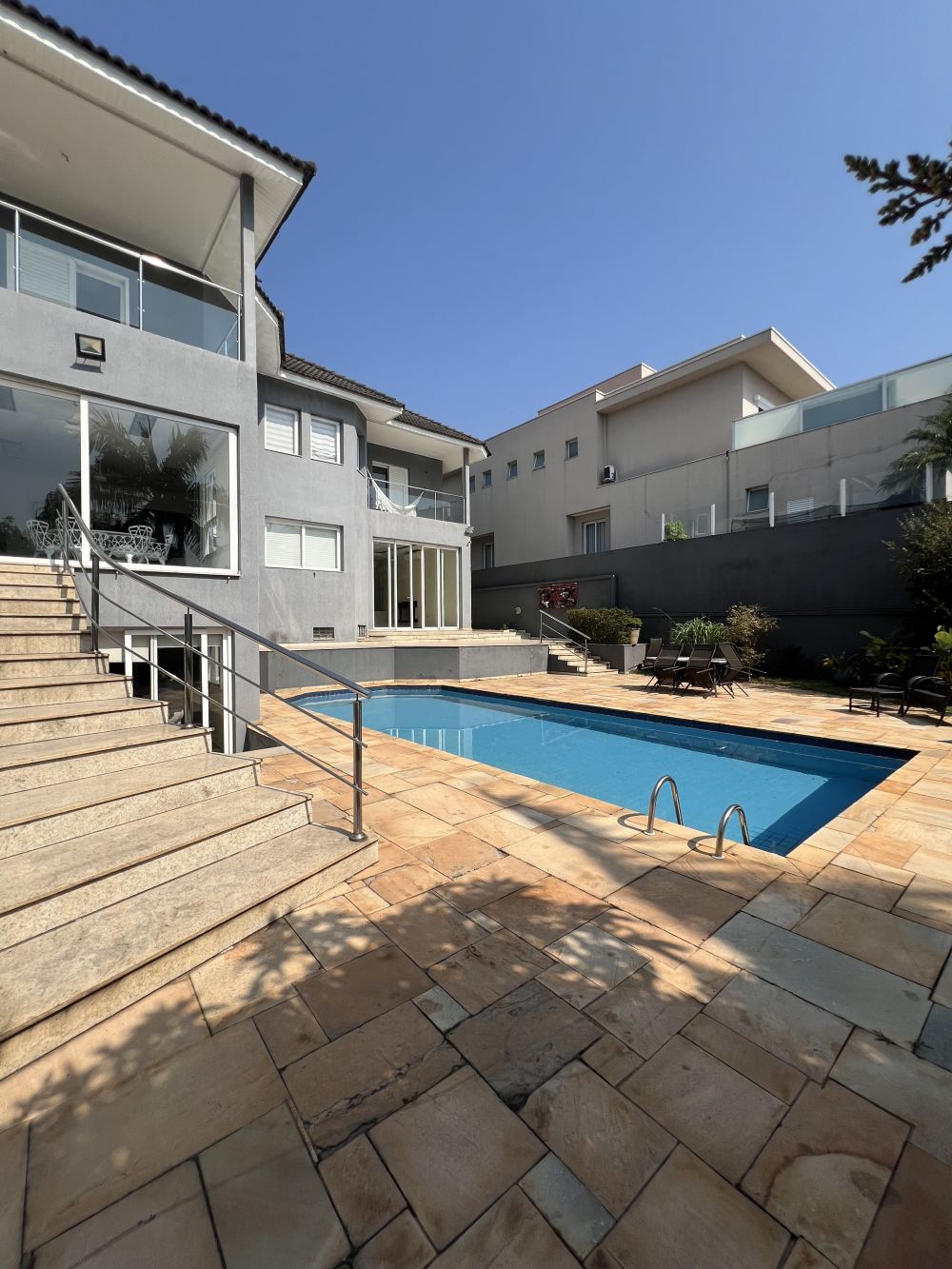 Piscina com quintal, belo gramado