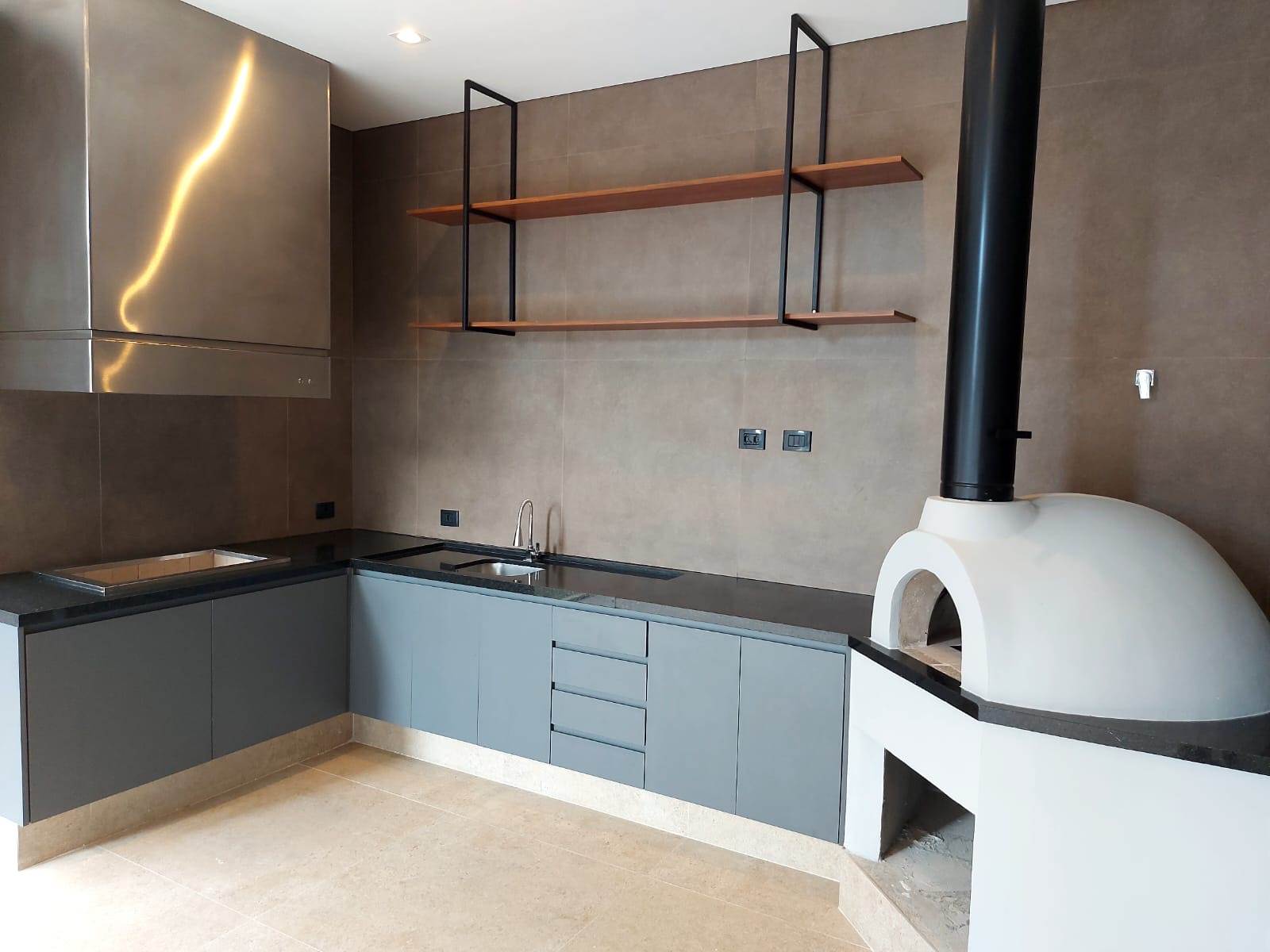 Espaço gourmet com forno de pizza e Churrasqueira.