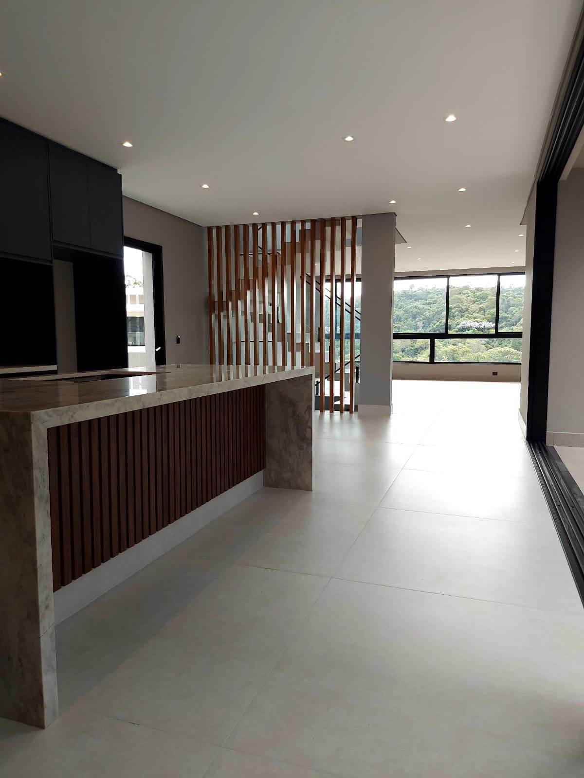 Living ampla e integrada com a cozinha