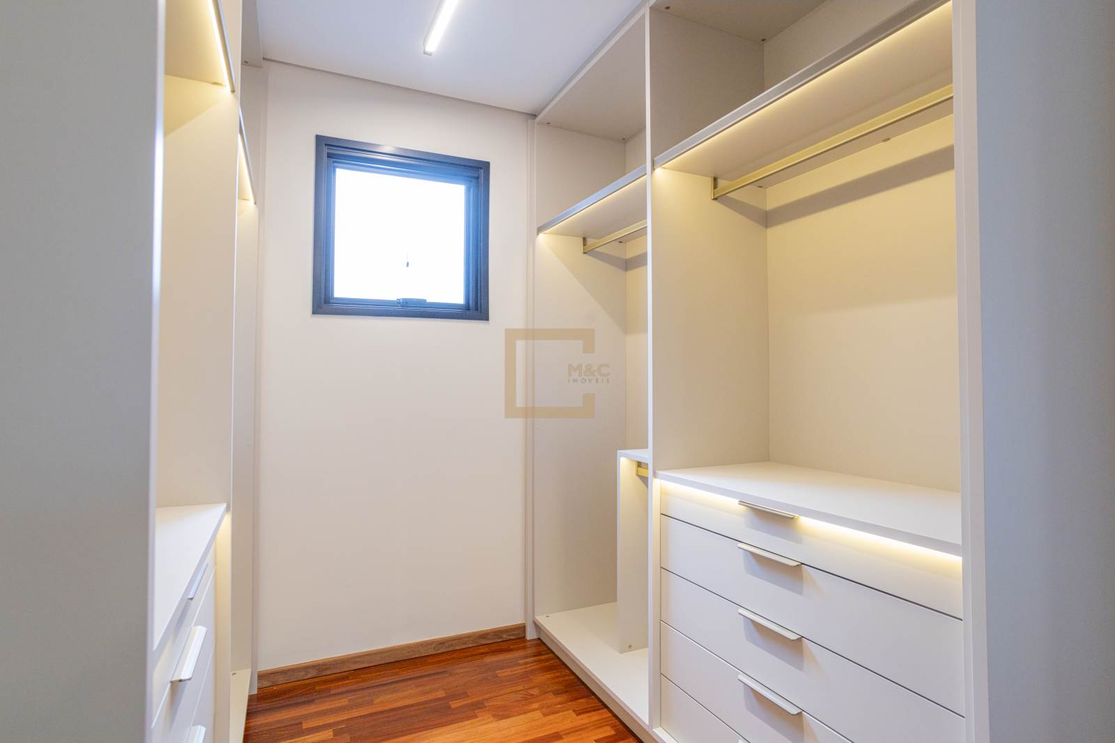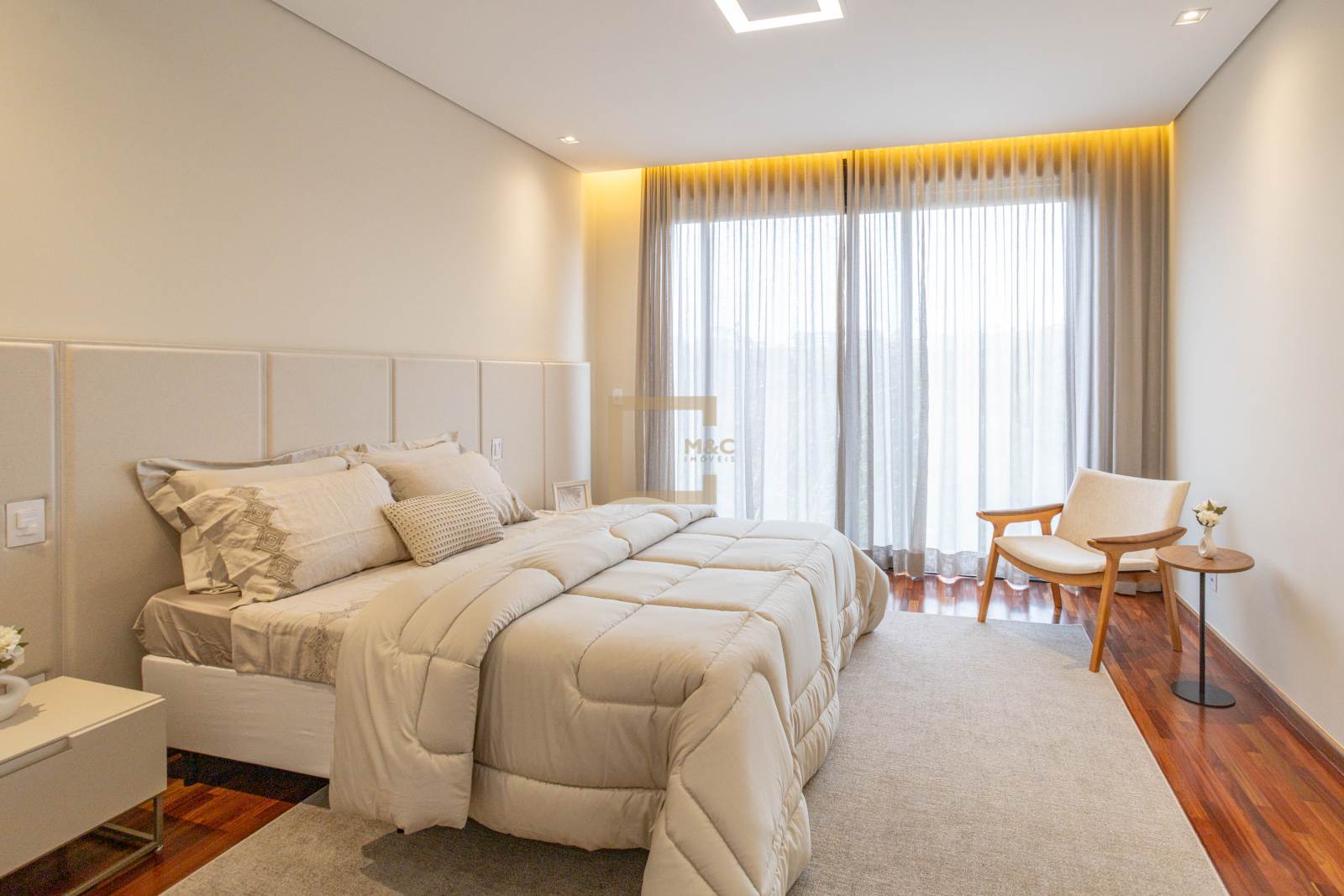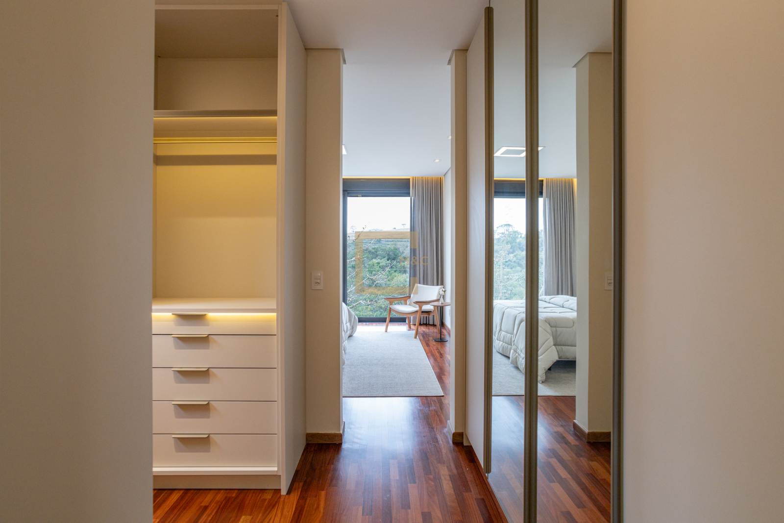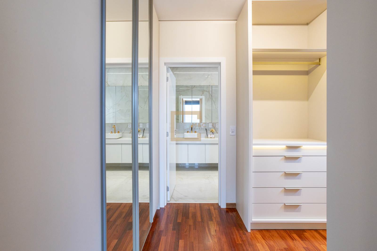 • Quartos em piso de madeira cumaru e demais áreas em porcelanato