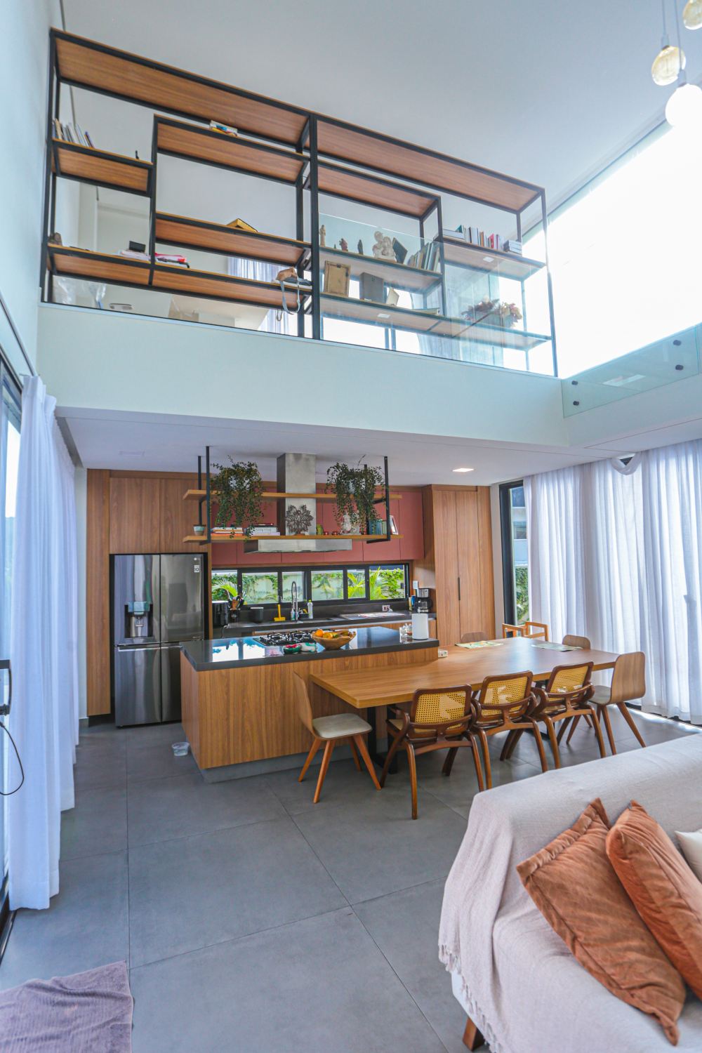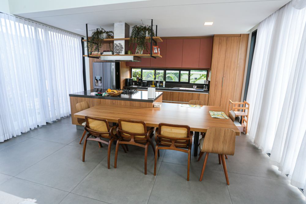 A casa será entregue totalmente mobiliada incluindo eletroeletrônicos, suítes com estrutura de ar-condicionado, sendo 2 já com a instalação do ar realizadas. Escritório no primeiro pavimento, sala com pé direito duplo integrada com a área de lazer e cozinha estilo americana.