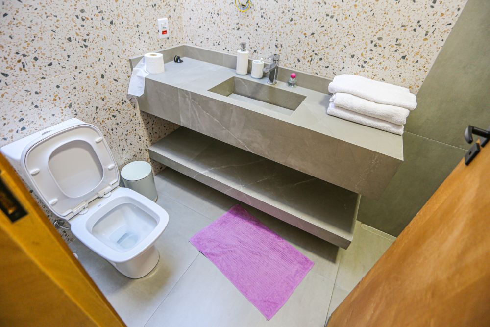4 suítes sendo 1 suíte térrea e 3 suítes no pavimento superior